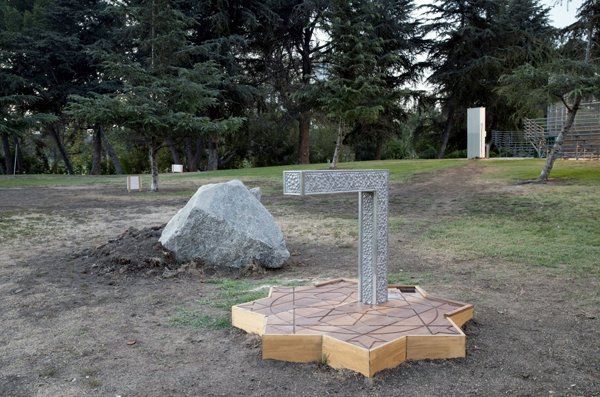 EA: So I thought back to this experience I had when I was in Jerusalem. I went and visited the old city of Jerusalem about 10 years ago and I went and visited this church called the church of the Holy Sepulcher I don’t know if you have ever been. I have seen some beautiful churches but this one hands down was the most magical one. So it has no nave, it only has chapels and all of these different brands of Catholicism exist in this one building and it s a very conflicted space because the different branches of the religion don’t get along and sometimes they actually fight each other... The different priests sometimes knife each other but this is a holy site. This is where Jesus’ body was interred in the cave or supposedly where he rose, where his body was cleaned after being taken down from the cross. So it’s like really intense. So I was walking through one of the chapels, the artist who was showing me around and I were looking at this little altar and I said, “What is that?” and he goes, “That’s the center of the earth according to this religion.” This kind of blew my mind. But of course the earth is round so any one point of the globe will be the center of the earth. So I looked over and saw another one maybe about twenty feet away and I said, “What’s that?” and he goes, “Well according to that religion that is the center of the earth.” Then it just kind of struck me as both you know beautiful and it sort of said something about belief and about conflict at least within the Judeo-Christian tradition that is about othering other belief systems. So I knew I had these two fountains that I was working with in the park. I am basically remaking the two fountains in something of a design that is reminiscent of an arabesque pattern that will look something similar to this (showing KACH the design) it will look in this range and height. What is the name of the large stone that people circle around for prayer? Have you seen it? You know the one I am talking about.