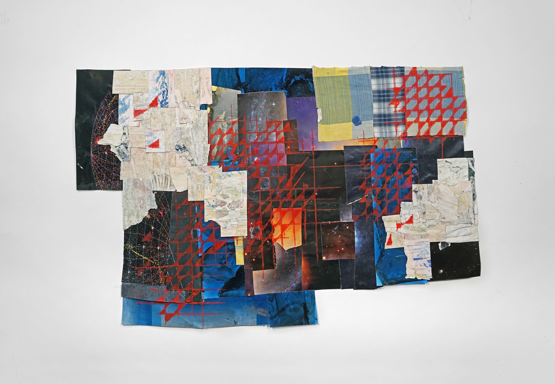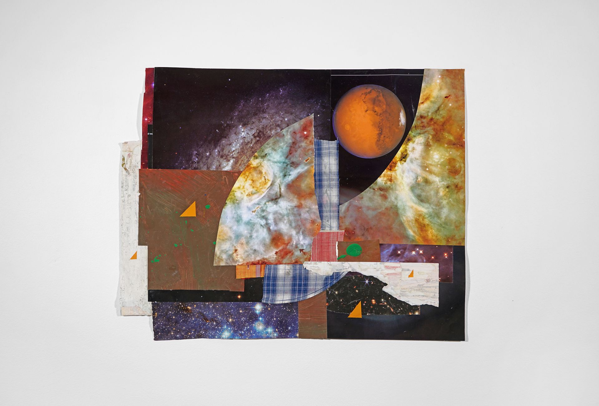 While residing in Rome as an art fellow at the American Academy, I became interested in the Etruscan civilization, concentrating on their visual language, spiritual beliefs, and urban architecture. My studio and accommodation were situated at the American Academy’s Casa Rustica, where astronomer Galileo Galilei exhibited his innovative invention, the telescope, to an attentive audience. During my visit, I encountered these collage-like artworks that suggest potential journeys, cosmologies, and the desire of the lost Black family to find its way home. The pieces appear to encode the tradition of collage alongside a reinterpretation of Black cultural storytelling.
